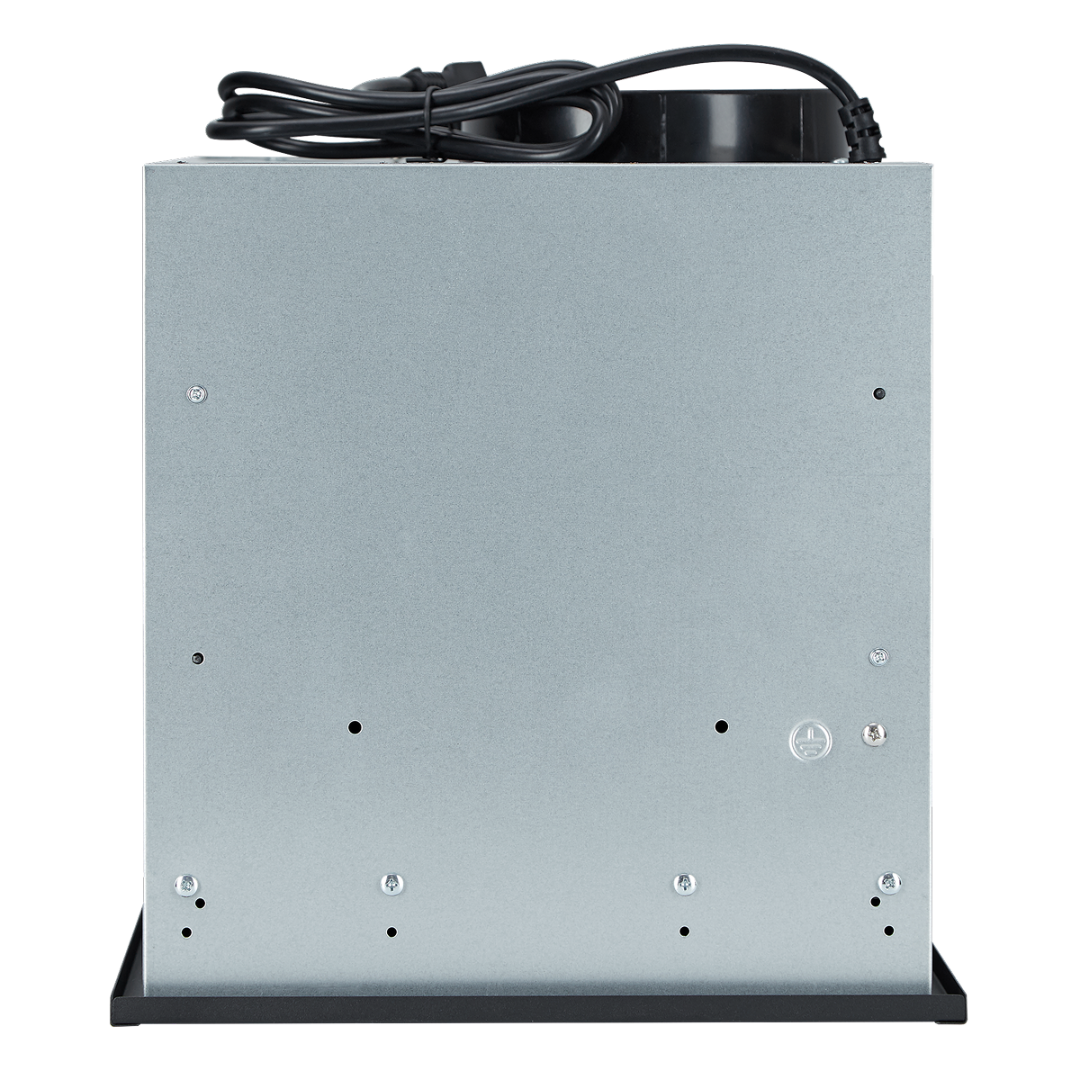 Вытяжка оснащена тихим и высокопроизводительным BLDC-двигателем на 37 Вт и производительностью 1000 м³/ч. Для улучшения эргономики использования панель управления имеет изменненый угол расположения.