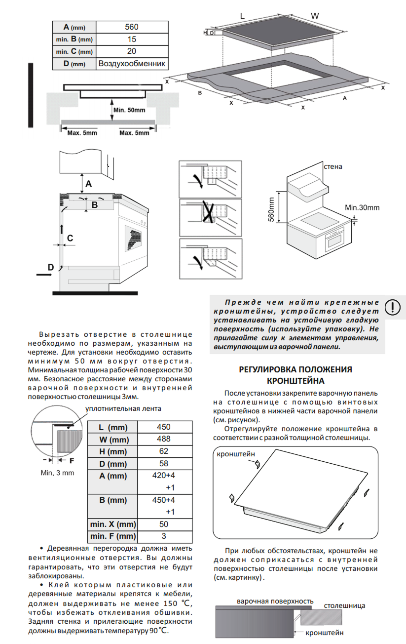 Рабочая поверхность | стеклокерамика | |